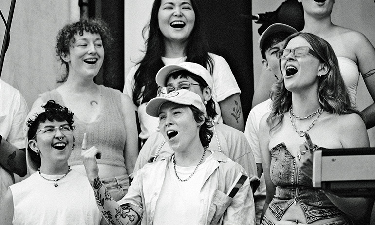 Ein Raum, ein Moment: Mit den D‑Dur Dykes* kommt etwas Besonderes nach Leipzig. Der größte FLINTA*-Chor Europas gastiert in der Heilandskirche Plagwitz. Rund 200 Sänger*innen bilden den Chor insgesamt – etwa 50 Stimmen davon füllen an diesem Abend die Kirche mit queerer Popmusik, neu gedacht und vielstimmig arrangiert. Auf dem Programm stehen Songs von Artists wie Chappell Roan, Sam Smith oder Tracy Chapman, genauso wie Stücke von bekannten Indie-Musiker*innen. Was hier passiert, ist kein klassisches Konzert, sondern ein kollektiver Moment zwischen Empowerment und Gänsehaut. Ein Chor als Community. Eine Kirche als Resonanzraum. Und ein Abend, das zeigt, wie Zusammenhalt klingen kann.